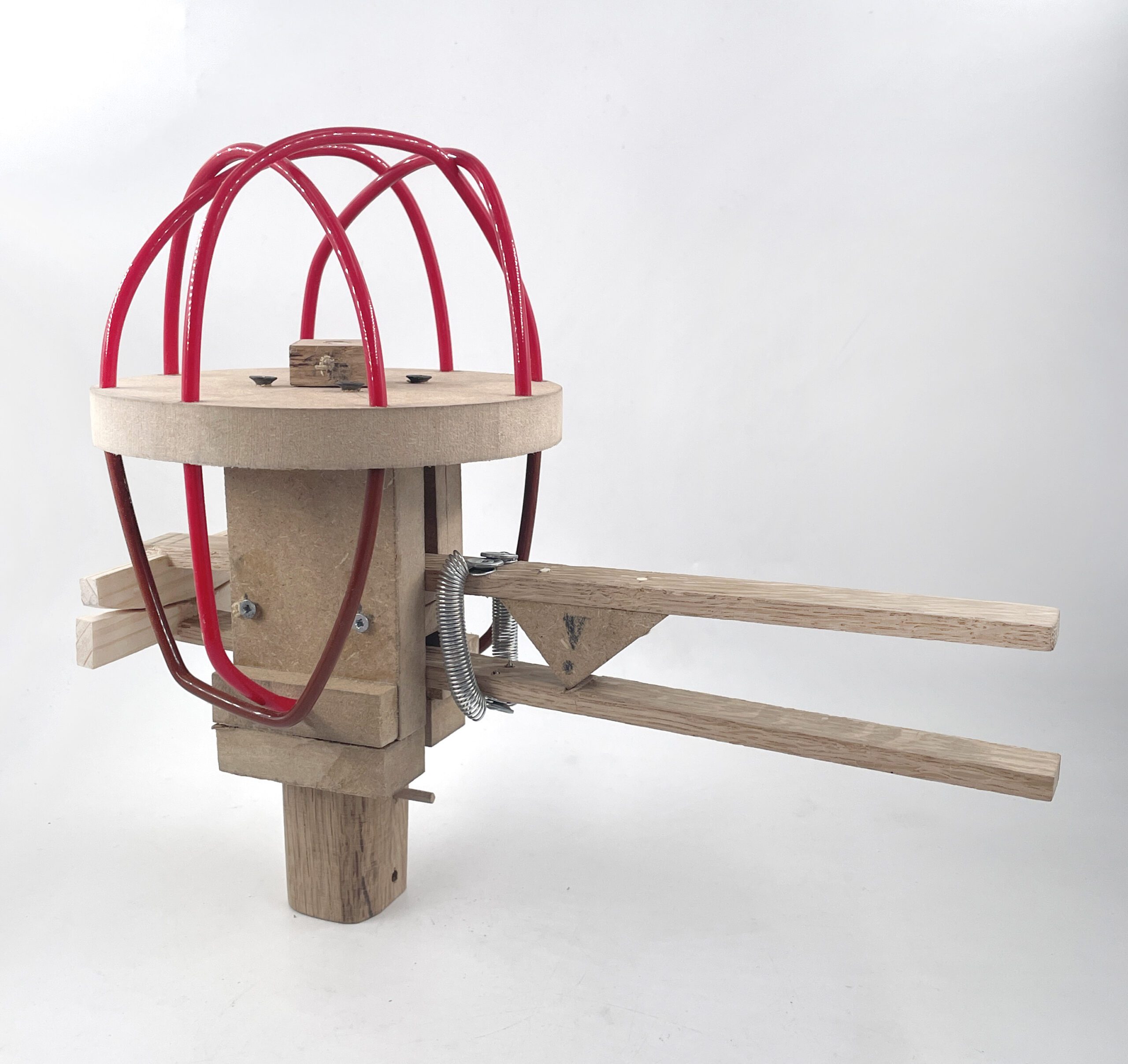 Latex casting, various wood types, steel springs, textiles