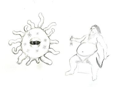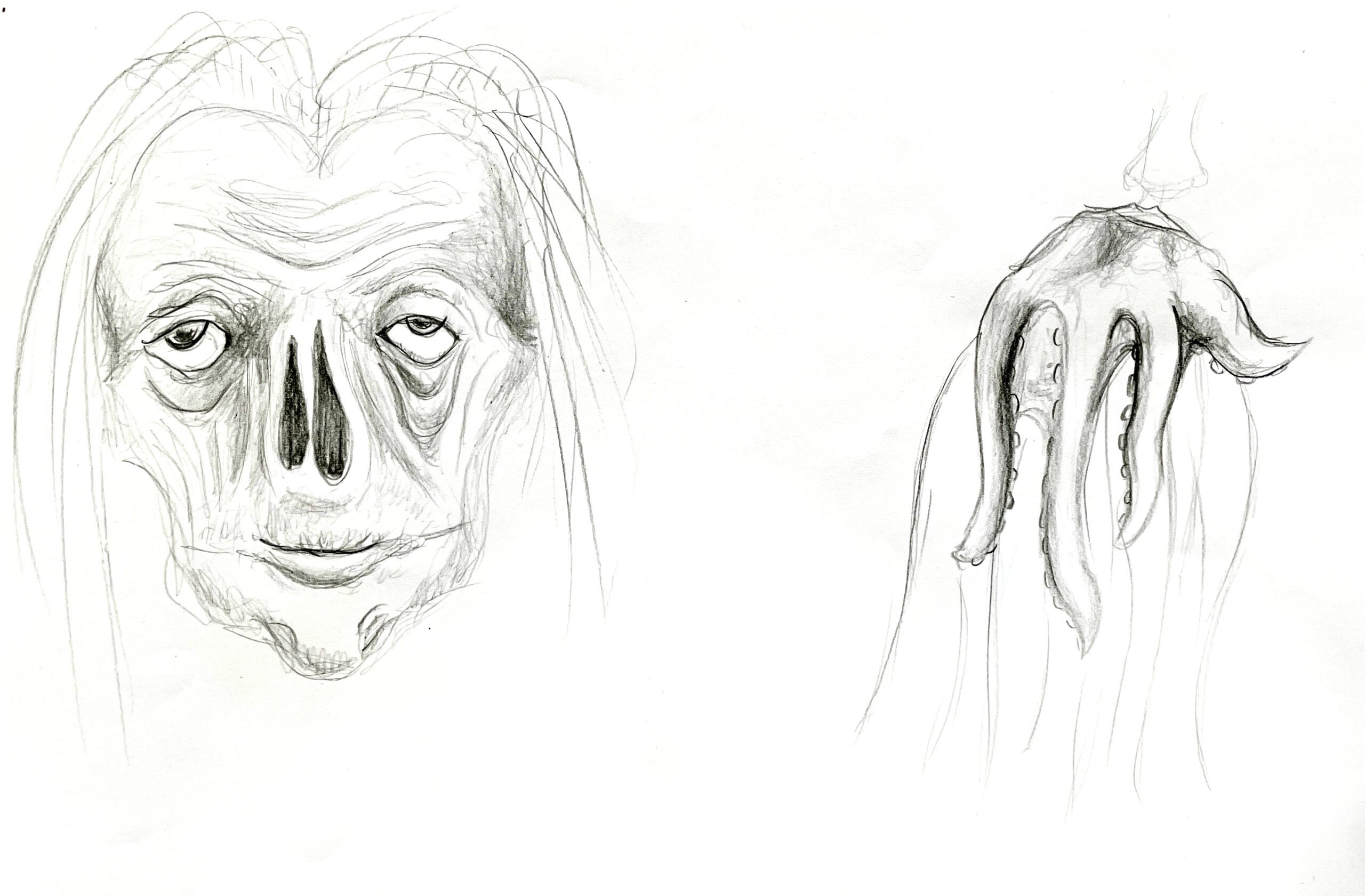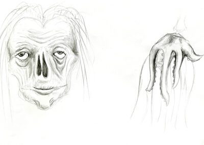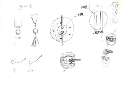 In the process, I also followed a “design through research” path with emphasis on manual sketching and material research. Sketches helped me develop the internal structure and appearance of the puppet, and material research allowed me to choose the puppet type with the most potential to evoke the feeling of the uncanny, as well as dive into new techniques such as latex casting.